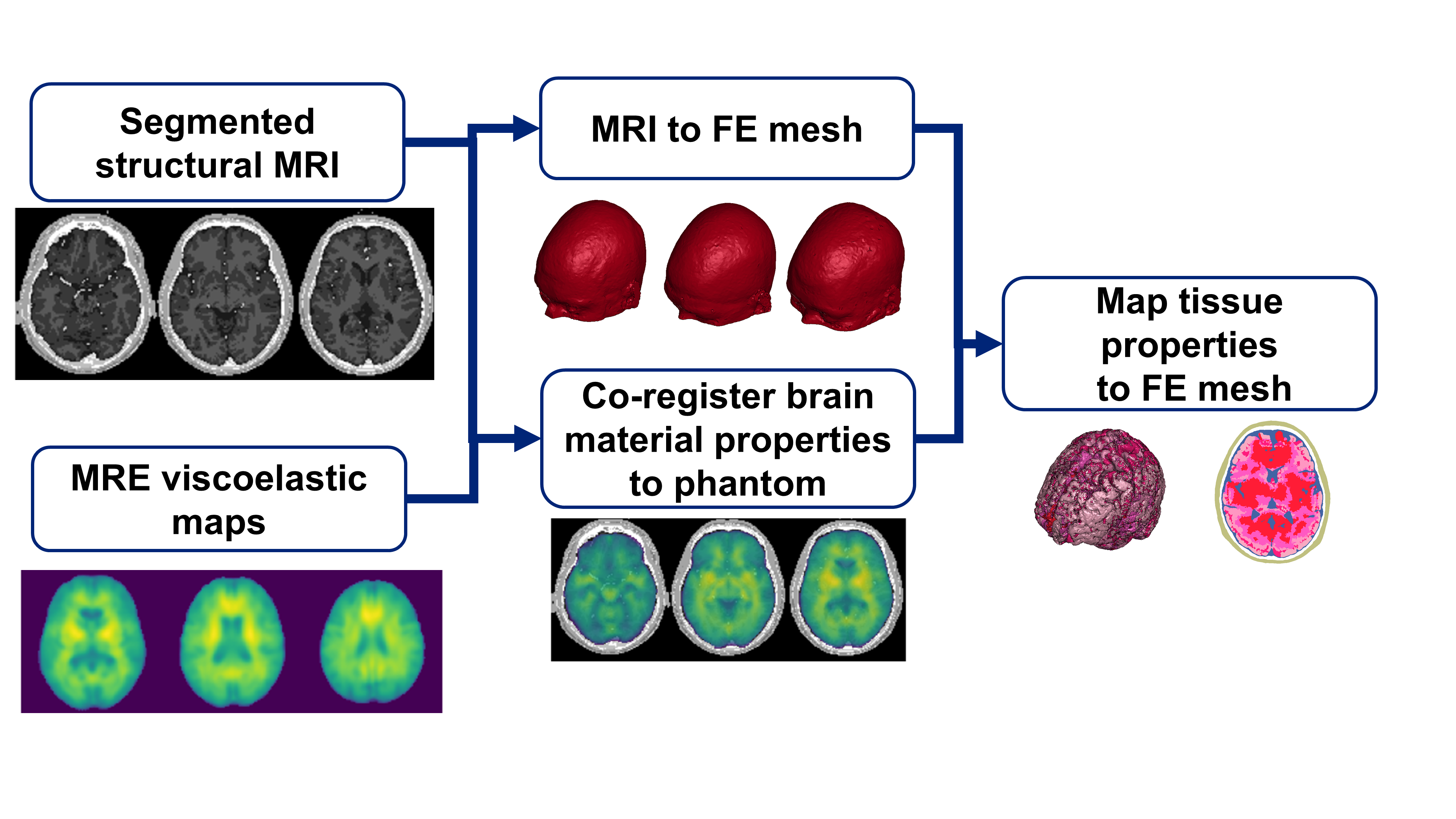 The objective of this software project was to develop a tool capable of automated generation of finite element models of the head using medical imaging data. While meshing tools already exist that are capable of generating a finite element mesh from medical images, the objective of this toolset was to create a system capable of also integrating material property data measured using magnetic resonance elastography. By integrating both patient specific tissue geometry and material properties, this tool enables the user to generate the highest-fidelity patient-specific mechanical modes of the head to date.